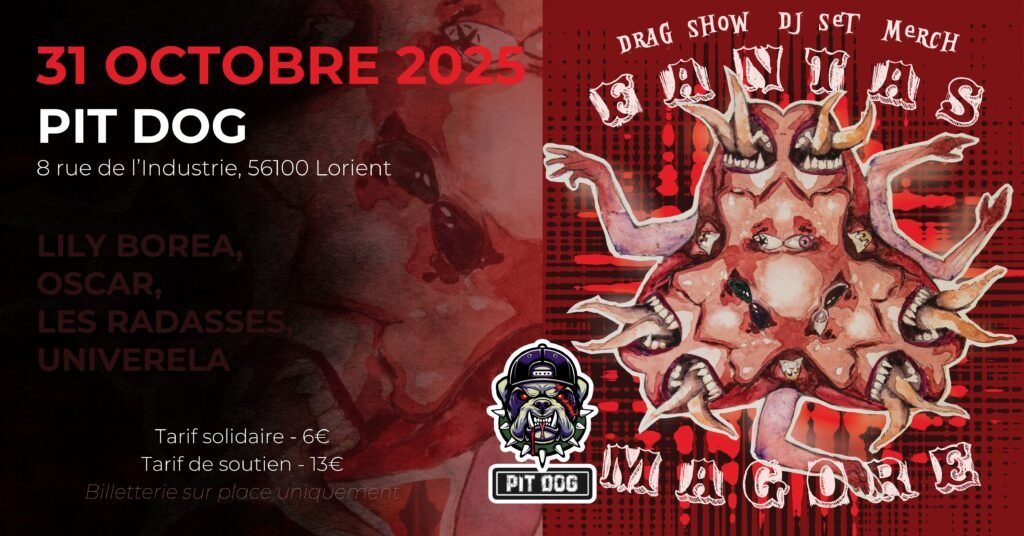 Pour célébrer les morts, les vivants et tous ceux entre les deux, retrouvons nous dans le hangar du Pit Dog pour une soirée dark, sexy et gore portée par Oscar, Univerela, Lily Boréa et la famille Radasse !